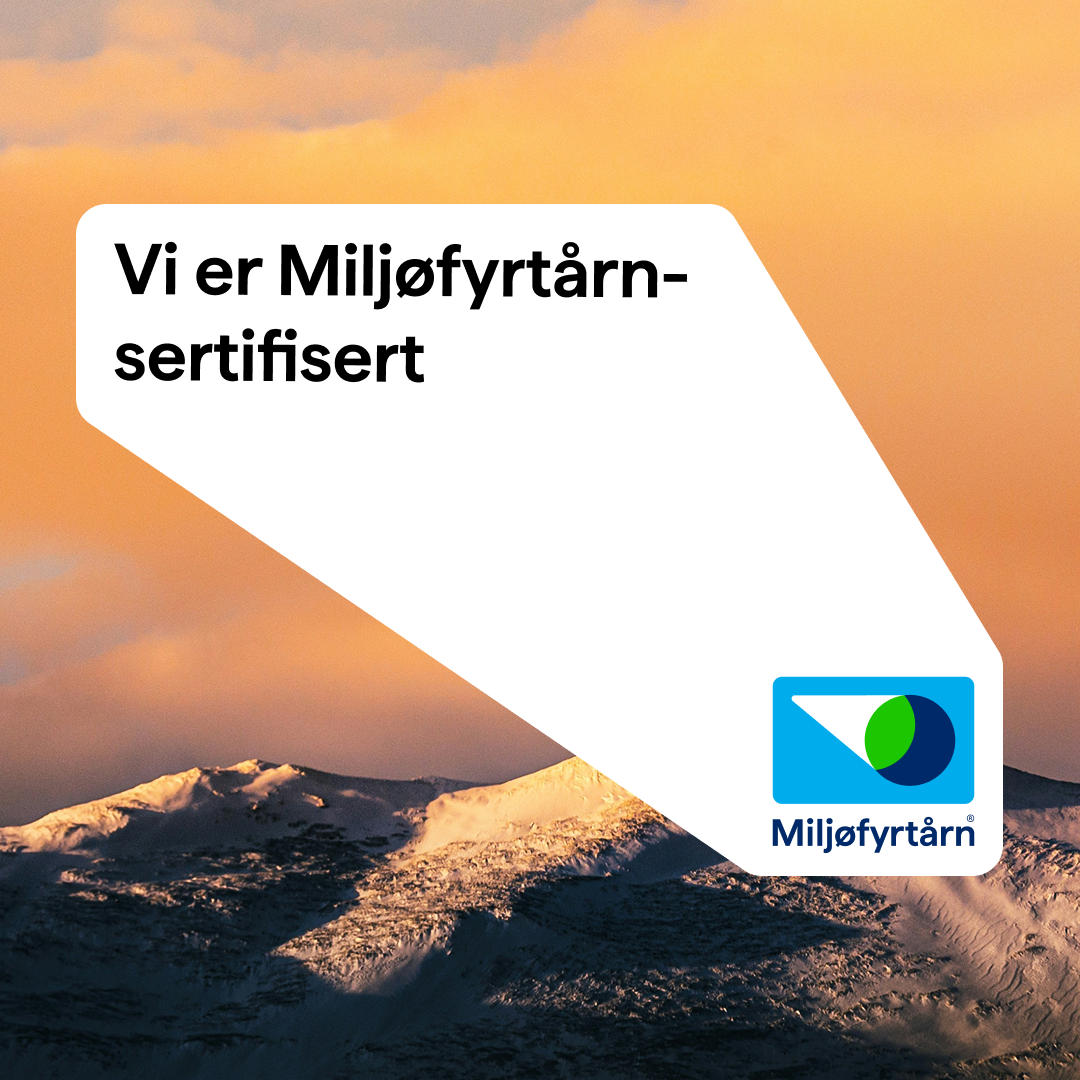 Vi er utrolig stolte over å være Miljøfyrtårn-sertifisert. Nå har vi et synlig bevis på at vi tar ansvar, og et konkret verktøy for å jobbe kontinuerlig med